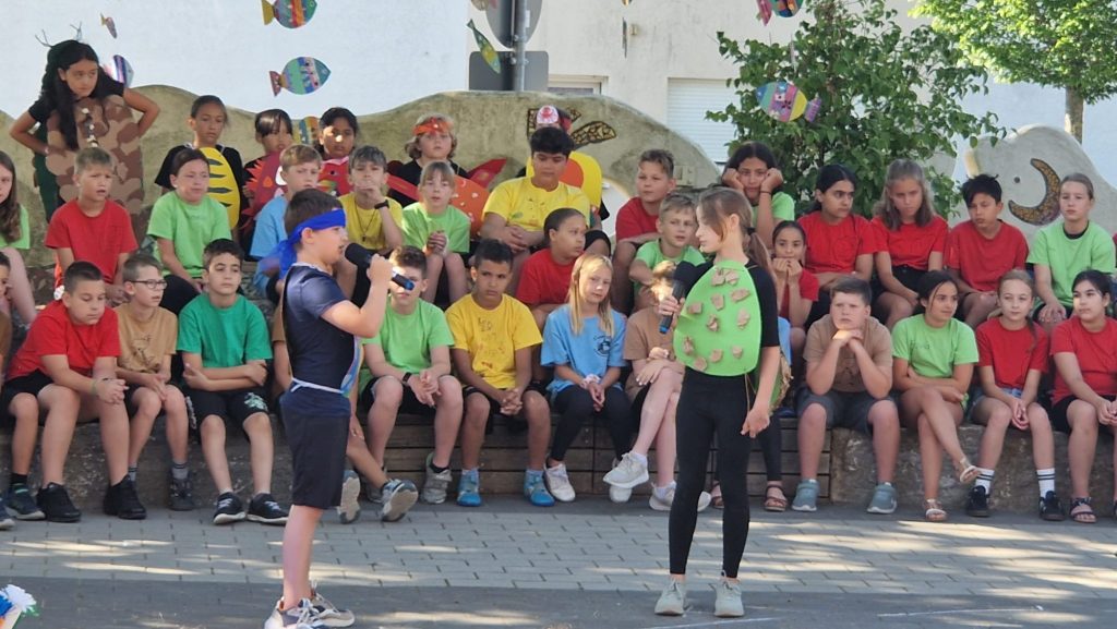Heute fand an unserer Grundschule die Verabschiedung der 4. Klassen statt. Hierbei zeigten sie ein liebevoll einstudiertes Theaterstück, das der Jahrgang gemeinsam mit ihren Klassenlehrkräften auf die Beine gestellt hat. Mit Witz, Gefühl und Spielfreude erzählten sie eine Geschichte über Freundschaft, Mut und Abschied – passend zum Anlass.