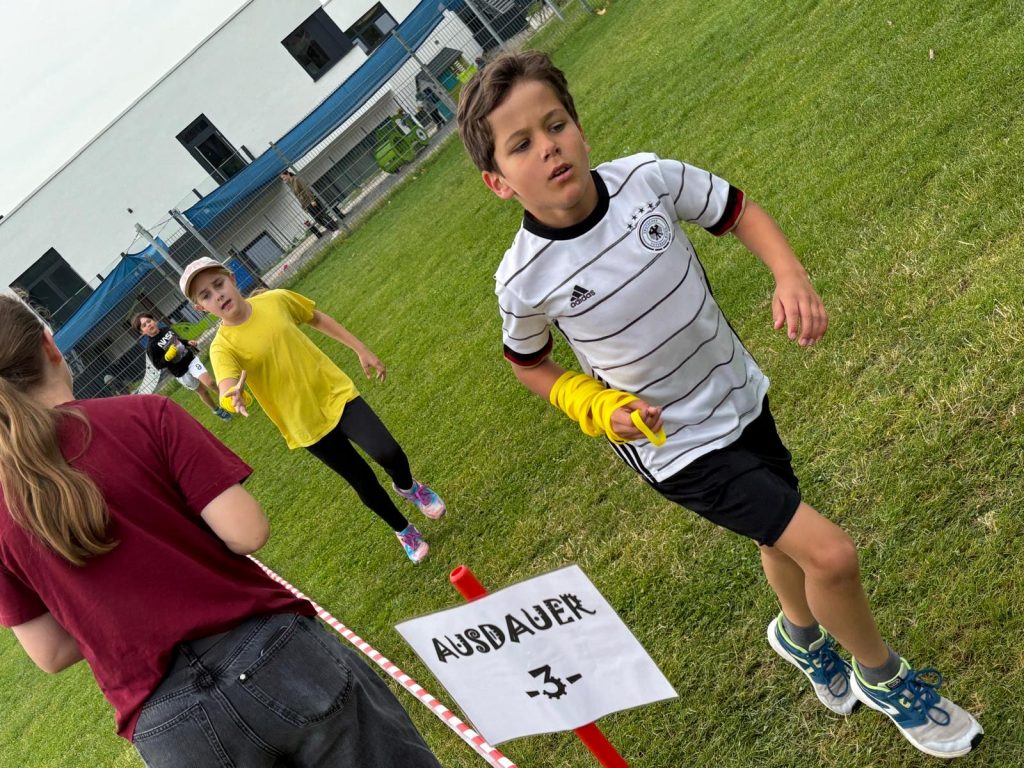 Am 10. Juni fanden unsere Bundesjugendspiele statt. Zu perfekten Bedingungen durfte der Jahrgang 2 starten, es folgten die Jahrgänge 3 und 4. Den Abschluss machte Jahrgang 1. Bei den Disziplinen Ausdauer, Sprung, Wurf und Hindernissprint konnten die Kinder ihre sportlichen Fähigkeiten unter Beweis stellen. Im Mittelpunkt stand aber nicht nur die Leistung, sondern vor allem Freude und Einsatz. Am Ende zählte nämlich nicht nur die Punktzahl, sondern das gemeinsame Erlebnis: Sport verbindet und macht stark!