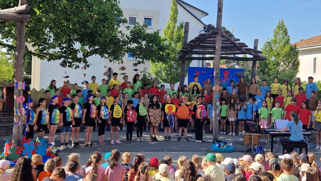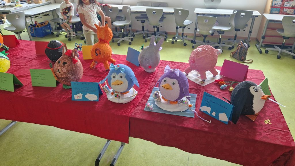 In der vergangen Woche herrschte an unserer Grundschule ein buntes Treiben: Die diesjährige Projektwoche bot den Schülerinnen und Schülern ein vielfältiges und spannendes Programm. In zahlreichen Projekten konnten die Kinder ihrer Kreativität, Neugier und ihrem Bewegungsdrang freien Lauf lassen. Ob beim Tanzen in “Move your feet”, beim Musizieren, beim Konstruieren in “Lego Education” oder beim Gestalten fantasievoller Gebäude in “Eine Stadt nach Hundertwasser” – für jeden war etwas dabei. Kleine Forscher erkundeten das Weltall im Projekt “Weltraumforscher”, das Meer im Projekt “In den Tiefen des Meeres”, experimentierten oder lernten Spannendes rund um die Biene, Hummel & Co.
