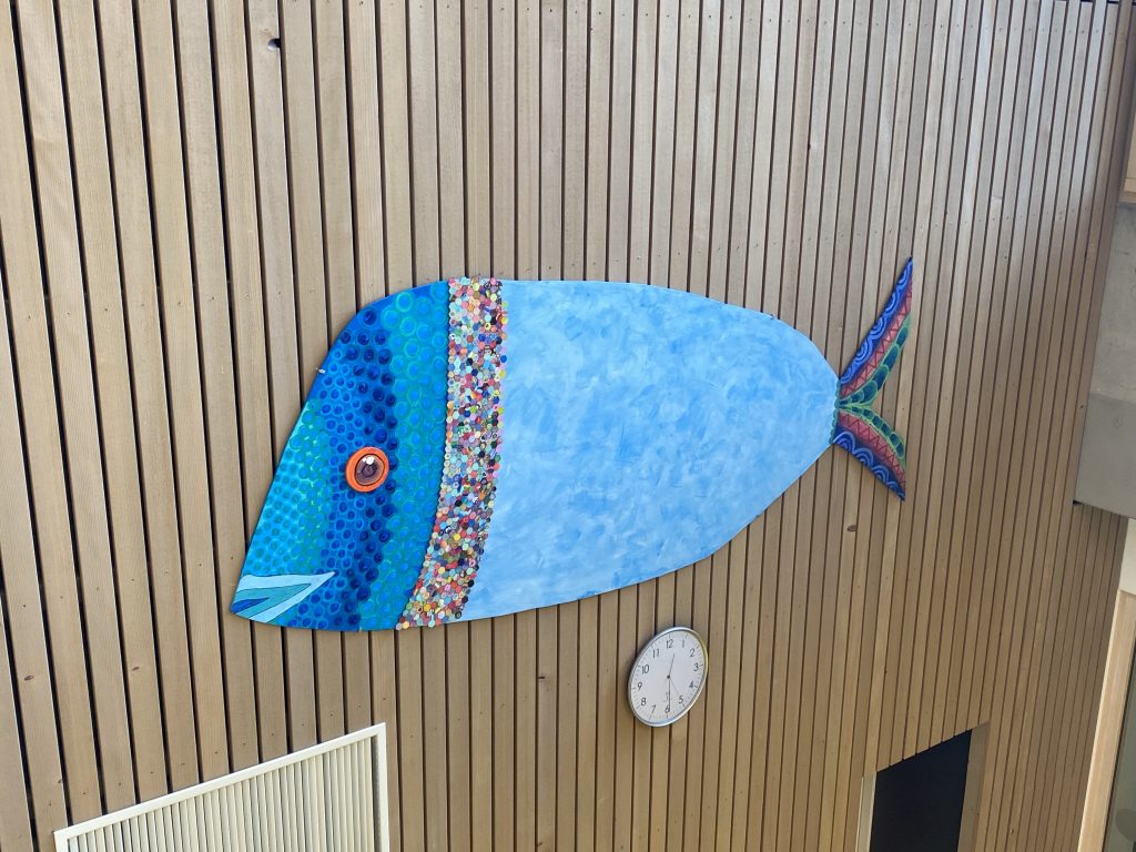 Eine Tradition beginnt: In den kommenden Jahren wird das Schuppenkleid weiter wachsen, indem jedes neue Schuljahr weitere Schuppen hinzukommen. So wächst der Fisch mit uns und erzählt von unserer gemeinsamen Geschichte. Das Projekt erinnert uns daran, dass jede Person der Schule einen Beitrag leistet und wir zusammen etwas Besonderes schaffen.