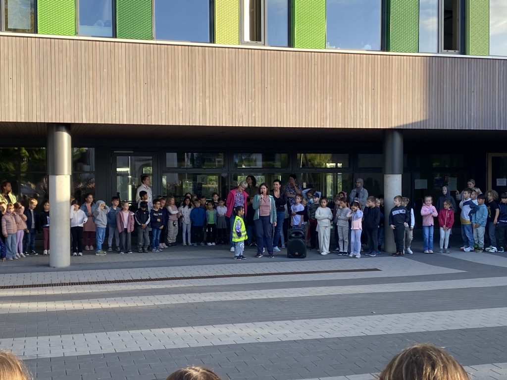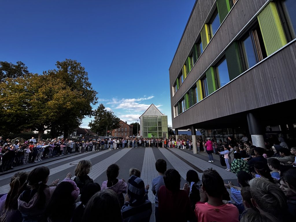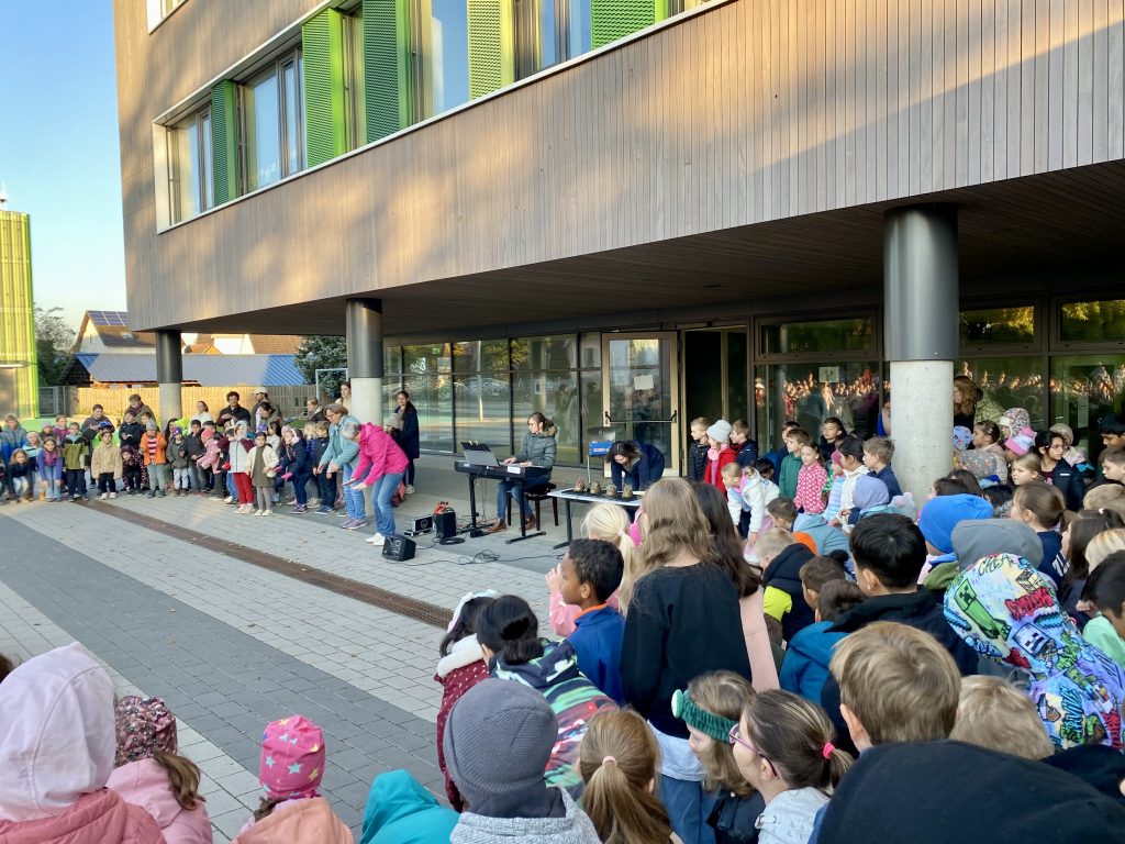 Zur Eröffnungsveranstaltung auf dem Schulhof begrüßte Frau Kühnl die Kinder. Sie hob die Bedeutung des Zu-Fuß-Gehens zur Schule hervor und motivierte die Schülerinnen und Schüler, möglichst eigenständig und umweltfreundlich unterwegs zu sein. Nach der Ansprache sangen alle Anwesenden gemeinsam ein passendes Lied, das den Aktionstag musikalisch abrundet.